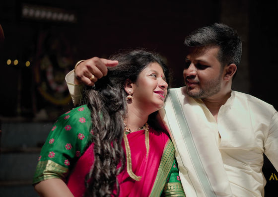 Yashashwini radiated grace in her exquisite silk saree, adorned with intricate details that symbolized femininity and strength. Naveen, ever supportive, matched her elegance, embodying the essence of partnership and love. Together, they created a beautiful visual harmony, reminding us how tradition beautifully intertwines with modern love.